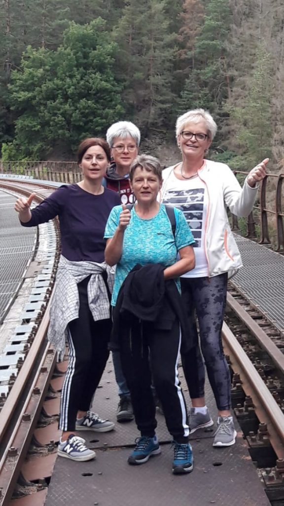 Im Sommer, wenn es lange hell ist und sich keiner gerne in geschlossenen Räumen aufhält, treffen wir uns zum Laufen in unserer schönen Natur. Unsere Wanderungen unterbrechen wir dann für kleine Übungen zur Koordination. Ein Sommerfest – meistens lassen wir es uns in der Bikerherberge in Leutenberg beim Buffet gut gehen – und ein